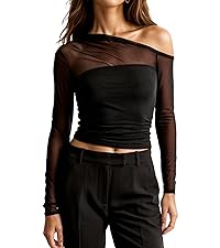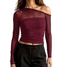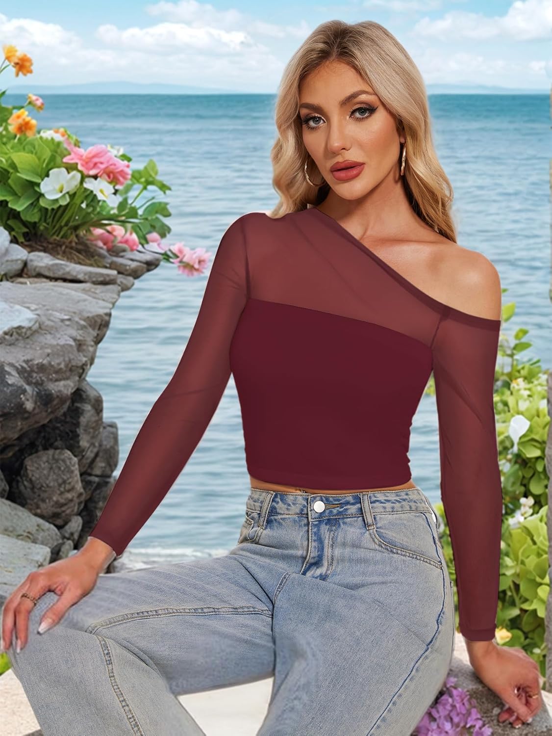 - See Through Design: Mesh long sleeve tops for women, off the shoulder tops for women feature mesh design to increase the visual layer, exuding a delicate and romantic atmosphere; Asymmetrical neckline adds a touch of playfulness, easily showing your sex appeal and fashion sense