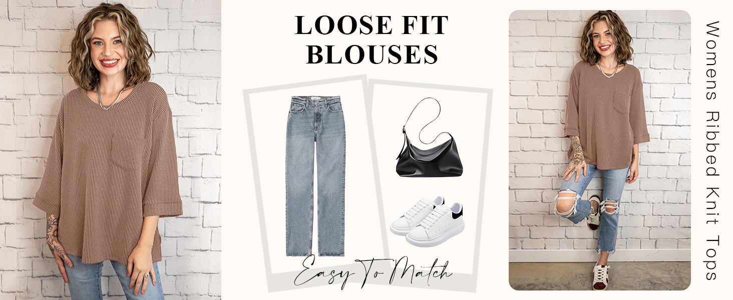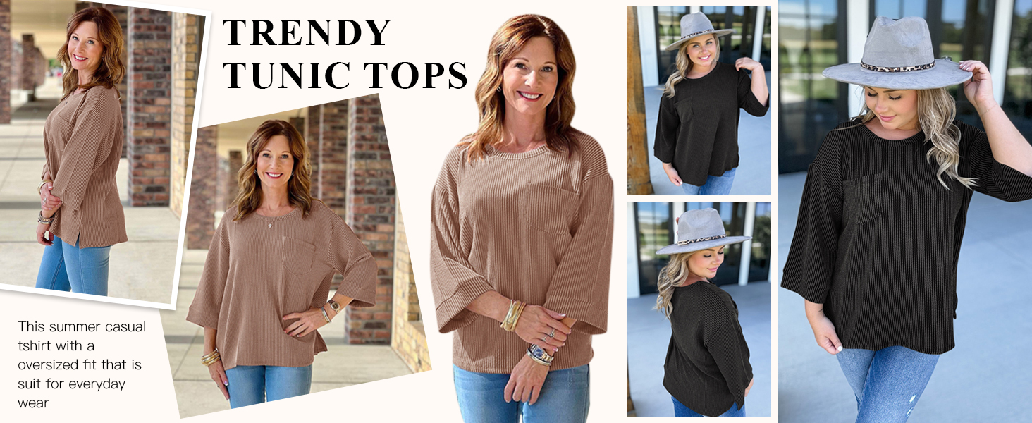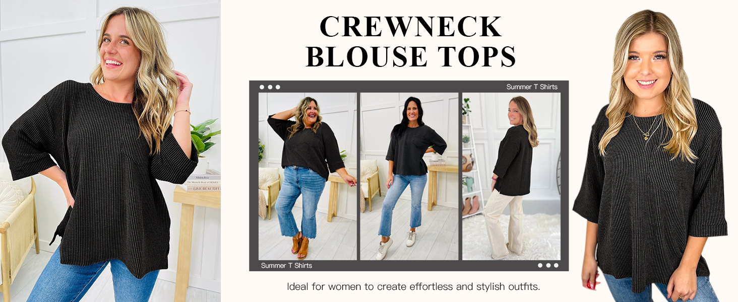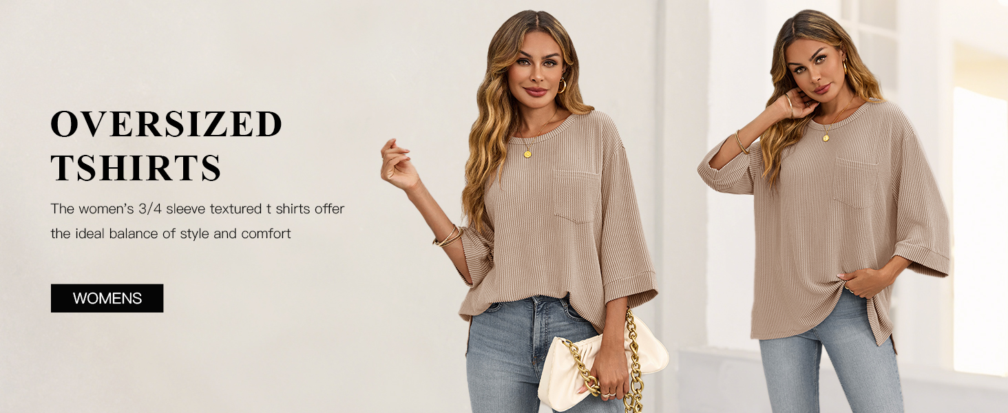 Tankaneo Womens Oversized 3/4 Bell Sleeve Tops Summer Casual Textured Knit T Shirts Loose Fit Crewneck Blouse Tees